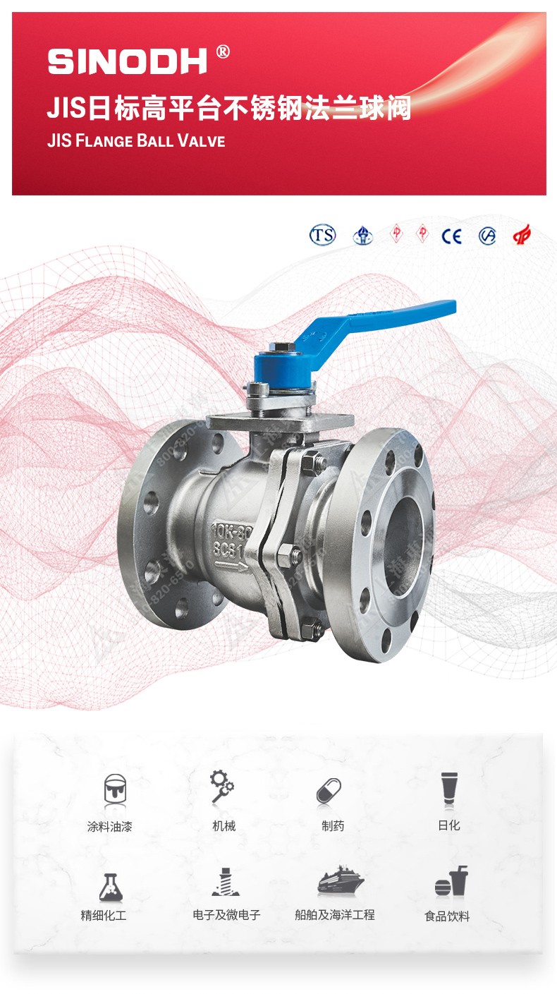 JIS日标高平台不锈钢法兰球阀,为球速体育在线开户app官方自主研发生产本产品设计制造标准符合J1 SB2071标准,该产品的球体(密封件)是浮动的,在介质压力作用下,球体能产生-定的位移并紧压在出口端的密封面上,保证出口端密封。适用于水、溶剂、酸和天然气等一般工业介质,也适用于工况恶劣的介质,如氧气、过氧化氢、乙烯等介质。